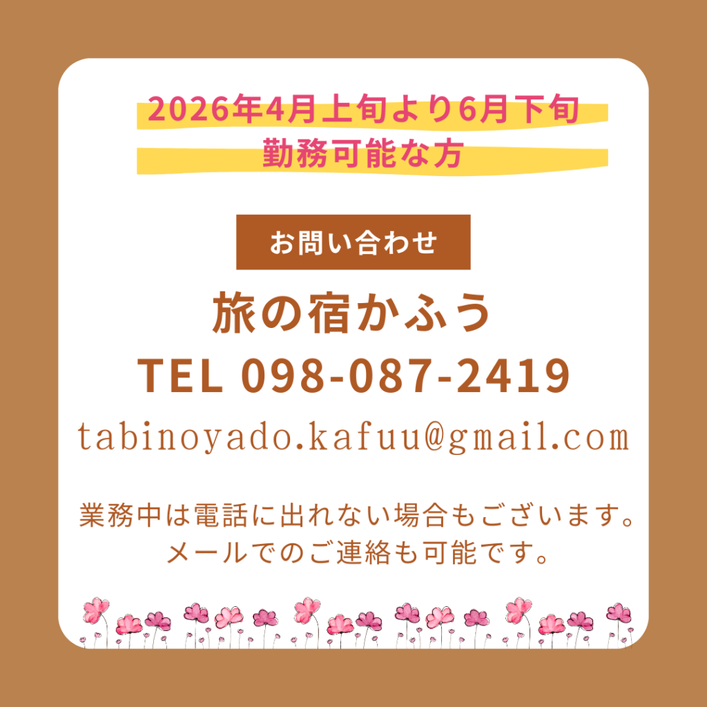 4月1日〜6月下旬まで、一緒に働いてくれるスタッフを募集します。