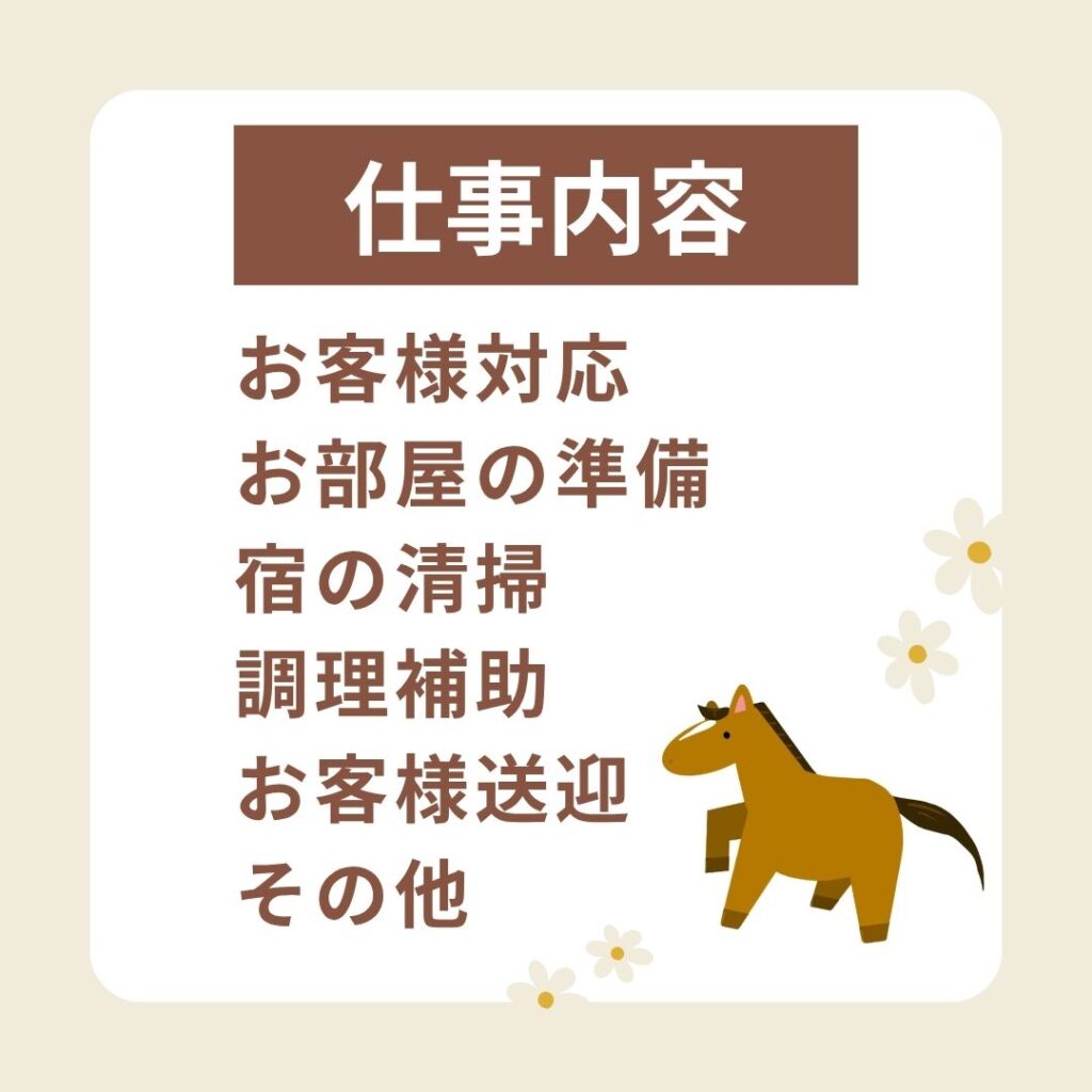 お仕事も民宿の仕事全般を覚えていただく形となりますが、一緒に宿の運営を楽しんでいただける方ですと嬉しいです。